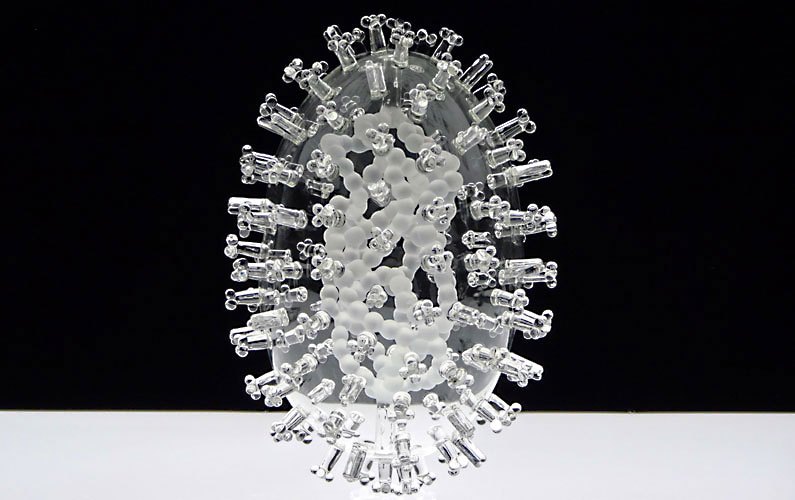 The first version, made in 2005, is one of Jerram’s earliest Glass Microbiology artworks. As such it is more abstract than the later 2012 artwork. In 2009, The Mori Museum, Tokyo exhibited this work in an exhibition called Medicine and Art, with works from Damien Hirst, Andy Warhol, Marc Quinn and Leonardo da Vinci.